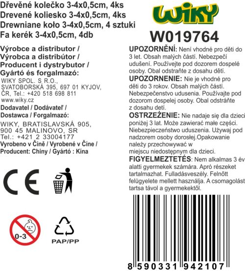 Dřevěné kolečko 3-4x0,5 cm, 4 kusy
