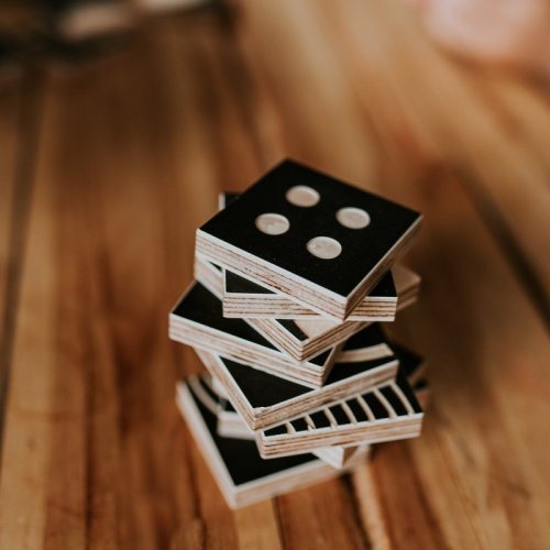 • kostičky jsou z jedné strany natřeny černou barvou, s kontrastními rytinami