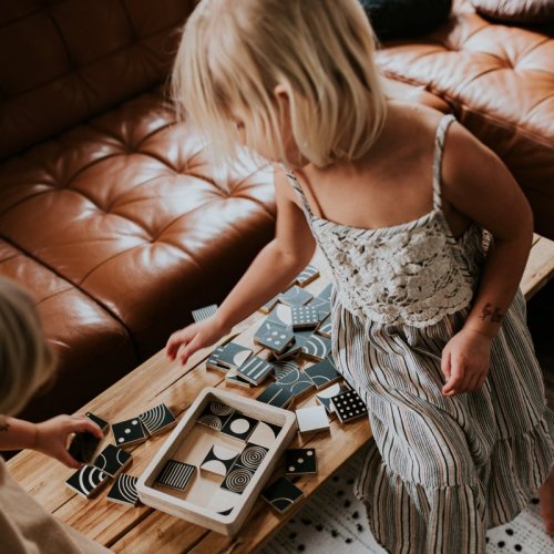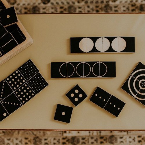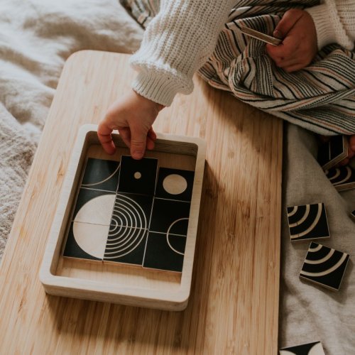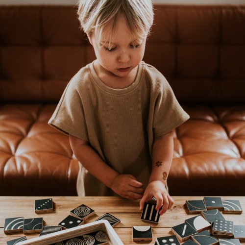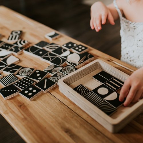 • krásná sada dřevěných kostiček pro rozvoj zraku a logického myšlení