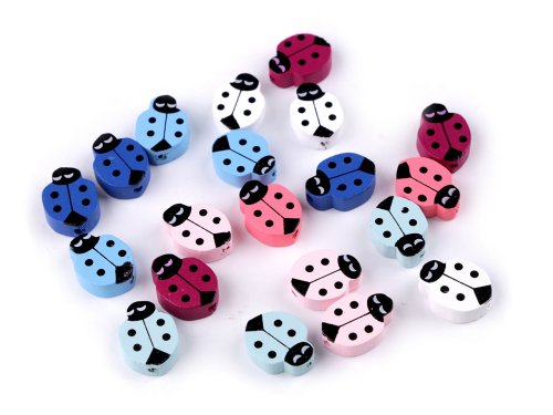 Mix barevných dřevěných korálků s roztomilým potiskem berušky potěší nejen korálkářky, ale i děti. Jejich velikou výhodou je lehký materiál. Dají se skvěle kombinovat s dalšími dřevěnými korálky, s kulatými ale i s dalšími zajímavými tvary. Jsou oblíbené i na výrobu lapačů snů[, dají se nalepit i na přání apod.] Můžete je navlékat například na pruženku či silon. Děti si mohou sami navléci jednoduchý náramek z pruženky - z kulatých korálků a střed ozdobit touto dřevěnou beruškou.