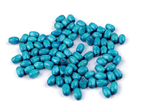 Dřevěné korálky oliva 5x8 mm - modrá azuro (20 g)