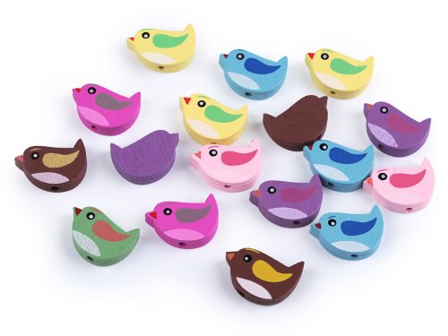 Mix barevných dřevěných korálků s roztomilým potiskem ptáčků potěší nejen korálkářky, ale i děti. Jejich velikou výhodou je lehký materiál. Dají se skvěle kombinovat s dalšími dřevěnými korálky, s kulatými ale i s dalšími zajímavými tvary. Jsou oblíbené i na výrobu lapačů snů[, dají se nalepit i na přání apod.] Můžete je navlékat například na pruženku či silon. Děti si mohou sami navléci jednoduchý náramek z pruženky - z kulatých korálků a střed ozdobit tímto dřevěným ptáčkem.