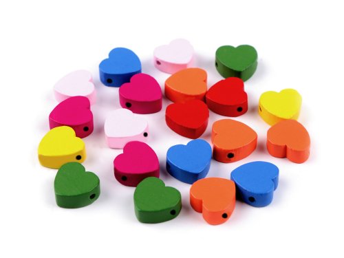 Barevné dřevěné korálky ve tvaru srdce potěší nejen korálkářky, ale i děti. Jejich velikou výhodou je lehký materiál. Dají se skvěle kombinovat s dalšími dřevěnými korálky, s kulatými, ale i s dalšími zajímavými tvary. Dají se nalepit i na přání apod. Můžete je navlékat například na pruženku či silon.