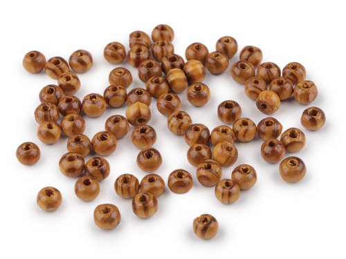 Malé dřevěné korálky s výraznou kresbou dřeva jsou lakované. Jsou vyrobené z borovice. Hodí se na výrobu náhrdelníků, náramků i náušnic. Jsou využívané na dámské i pánské šperky. Jsou lehké, hodí se i na dozdobení lapačů snů. Kvůli přírodnímu materiálu se mohou korálky mezi sebou barevně lišit. V balení 10 g je cca 125 ks korálků.