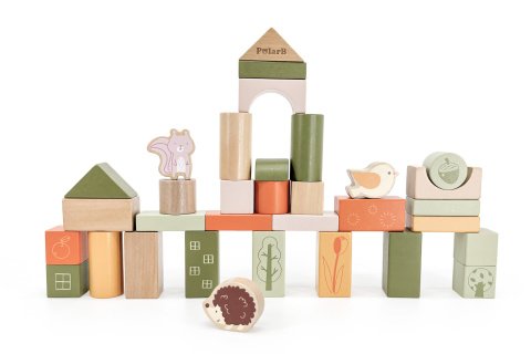 Dřevěná stavebnice se zvířátky. Balení obsahuje 50 dílků různých tvarů. Rozměry balení cca 23x14x6,5 cm. Věk 2+