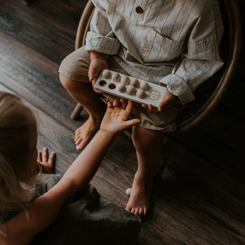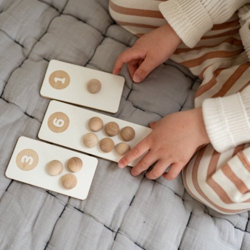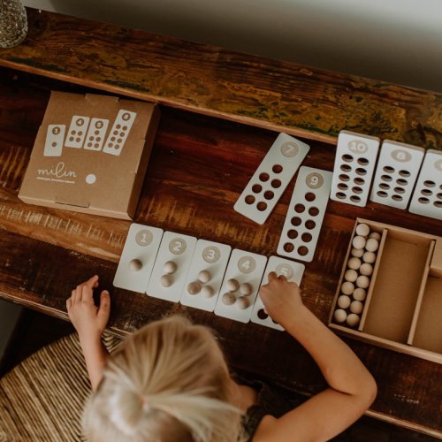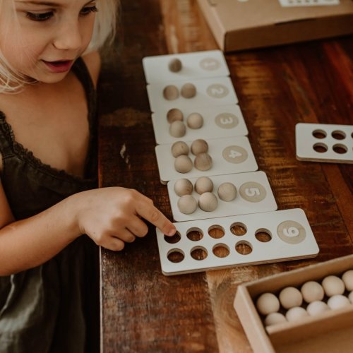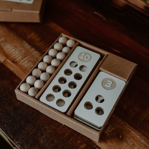 Sada dřevěných destiček a kuliček pro učení počítání od 1 do 10.