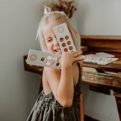 • úkolem je usadit příslušný počet dřevěných kuliček do dírek