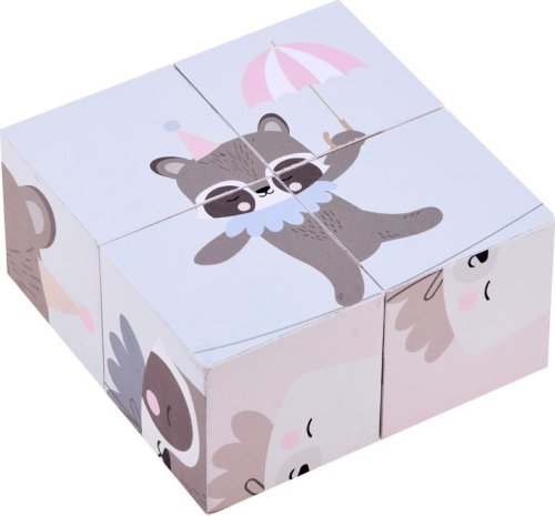 Kostky pro nejmenší! To je zábavné skládání ze 4 dřevěných kostek, ze kterých můžete postupně vytvořit 6 obrázků veselých zvířátek Víte jak tato zvířátka vypadají? Dokážete je poskládat? Jak se budou jmenovat? Kostky jsou skvělým dárkem k prvním narozeninám pro Vaše nejmenší ratolesti.