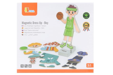 Tato sada obsahuje magnetickou dřevěnou panenku s dřevěným stojánkem a více než 40 barevných a atraktivních magnetických kusů oblečení k vytvoření 8 pracovních uniforem nebo oblečení. Panenku, stojan a dílky lze uložit do přiloženého krycího boxu. Rozměr balení cca 21 x 19 x 4,5 cm. Věk 3+