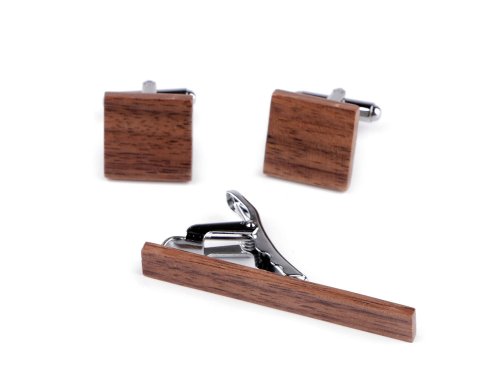 Manžetové knoflíky s kravatovou sponou v dřevěném provedení skvěle ozdobí každého muže. Dřevěný dekor stylově vynikne na manžetách košile i kravatě. Jsou z kvalitního kovu, mají precizní provedení. Využijete je ke slavnostním příležitostem i na obchodní jednání. Sada je zabalená v dárkové krabičce Natural, je vhodným dárkem, který každého muže potěší. Vzhledem k tomu, že se jedná o přírodní dřevo, mohou se knoflíky i spona v kresbě a struktuře dřeva mírně odlišovat.