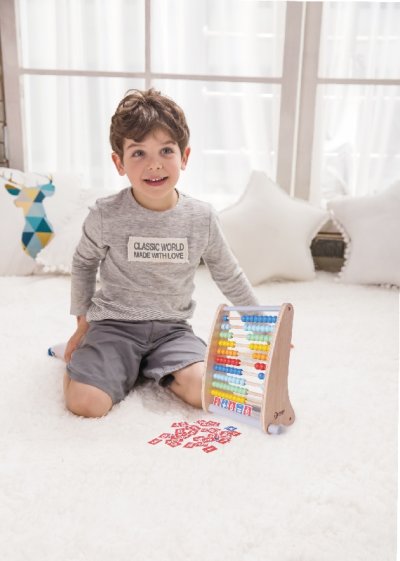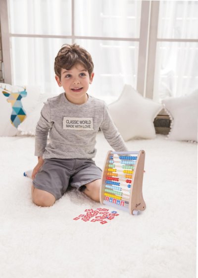 Klasické dřevěné počítadlo v přírodním provedení s barevnými kuličkami. Počítadlo podporuje logické myšlení a pomáhá při prvních početních úkolech.