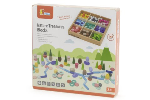 Velká sada dřevěných přírodních bloků. Baleno v krásné dřevěné krabici. Stavebnice obsahuje celkem 141 kusů. Rozměry balení 31x31x5 cm. Věk 3+