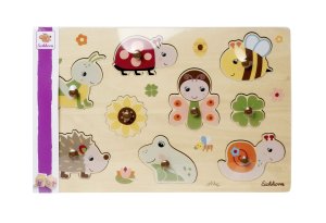 Dřevěné puzzle obsahuje 9 dílků. 2 druhy. Rozměry: 28 x 18 cm.