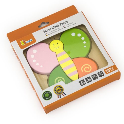 Dřevěné puzzle - vkládačka pro nejmenší s motivem motýla. Rozměry motýla cca 13 x 11 cm. Rozměry balení cca 15,5 x 18 x 2 cm. Věk 18m+