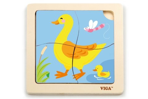 Dřevěné puzzle kachna, obrázek o rozměru cca 12 x 12 cm. Rozměry balení cca 15 x 15 x 1 cm. Věk 18m+