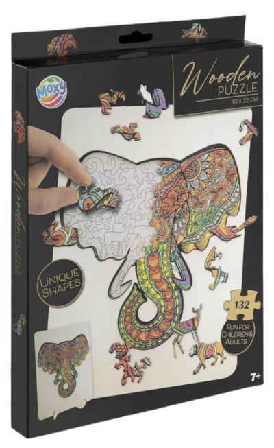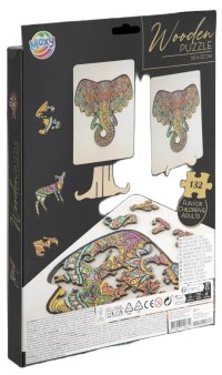 Úžasné puzzle s jedinečnými dřevěnými dílky o velikosti 30x22 cm, každý dílek je unikátní a je ve tvaru různých zvířátek, dílky se skládají do destičky, po složení vznikne z malých zvířátek/dílků obraz jednoho velkého, součástí balení je také praktický stojánek, aby bylo možné dokončenou skládačku patřičně vystavit. Zábava pro děti i dospělé.