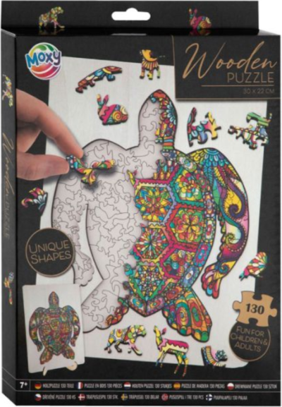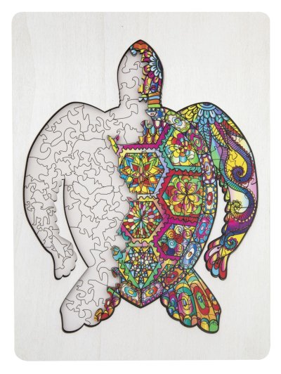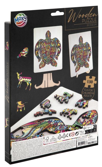 Dřevěné puzzle s motivem želvy. Obsahuje 130 dílků. Rozměry balení 22,5x32x2,5 cm. Rozměry složeného puzzle 30x22 cm. Věk 3+ (doporučeno od 7 let)