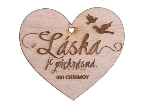 Malé dřevěné srdíčko s dírkou ve tvaru srdce a gravírovaným povzbudivým citátem. Poslouží jako milá drobnost k dárku, ale i jako samostatný dárek.