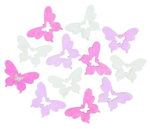 Dřevění motýli v odstínech růžové, fialové a bílé jsou určeni k vytváření dekorací.