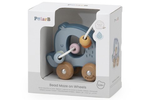 Tato roztomilá hračka s motivem slona v sobě spojuje korálkové bludiště a autíčko. Podporuje jemnou motoriku, koordinaci rukou a očí a kreativní hru, protože malé ručičky vedou korálky nebo kutálí autíčko. Baleno v otevřené krabici. Rozměry balení 15x15x9 cm. Rozměry slona 10x13x8 cm. Věk 12m+
