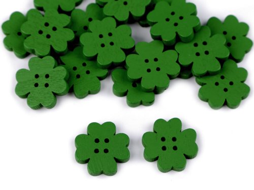 Dřevěné knoflíky v podobě čtyřlístku jsou vhodné k ozdobení tašek, pytlíků, kapsářů, foto rámečků, jmenovek apod. Můžete je našít i nalepit.