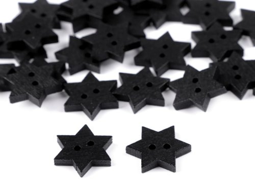 Dřevěný dekorační knoflík hvězda - černá (50 ks)