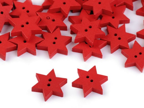 Dřevěný dekorační knoflík hvězda - červená (50 ks)