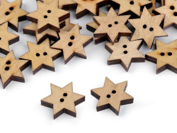 Dřevěné knoflíky ve tvaru hvězdy využijete ve scrapbookingu. Můžete s nimi ozdobit rámečky, přáníčka, jmenovky, pozvánky, deníky apod. Můžete je použít i do květinových vazeb, které se tím krásně oživí. Knoflíky jsou baleny v sáčku. Nedoporučujeme je prát.