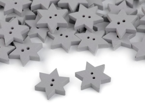 Dřevěný dekorační knoflík hvězda - šedá holubí (50 ks)