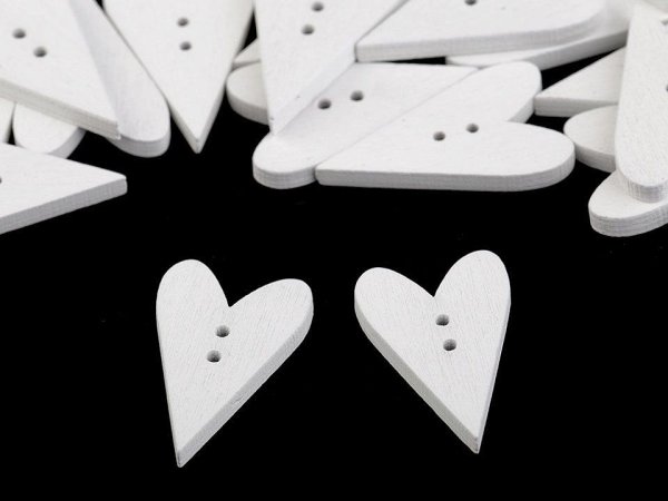 Dřevěné dekorační knoflíky ve tvaru srdce mají široké využití. Nejčastěji se s nimi můžete setkat ve scrapbookingu při zdobení rámečků, přáníček, jmenovek, pozvánek, deníků apod. Dále je můžete použít i na valentýnské a svatební dekorování. Knoflíky jsou baleny v sáčku. Nedoporučujeme je prát.