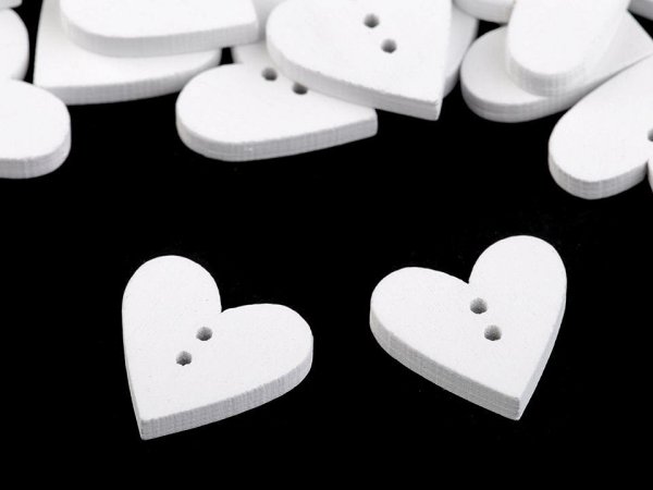 Dřevěný dekorační knoflík srdce - bílá (50 ks)