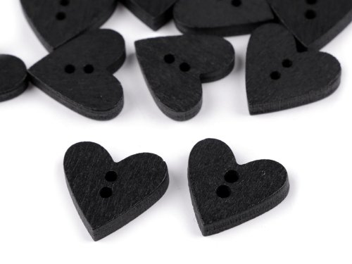 Dřevěný dekorační knoflík srdce - černá (10 ks)