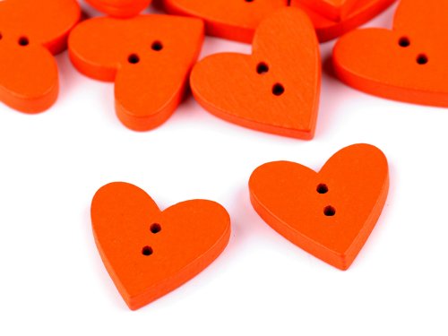 Dřevěný dekorační knoflík srdce - oranžová (10 ks)