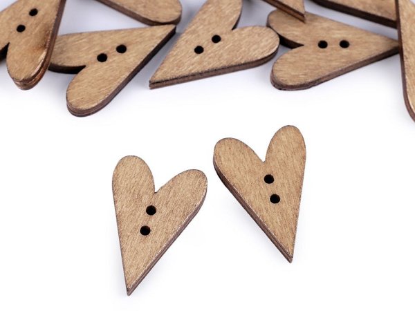 Dřevěné knoflíky ve tvaru srdce využijete k dekoračním účelům, převážně u scrapbookingu. Ozdobíte s nimi foto rámečky, přáníčka, jmenovky, pozvánky, deníky apod. Můžete je použít i do květinových vazeb, které krásně oživí. Knoflíky jsou balen0 v sáčku. Nedoporučujeme je prát. [V balení po 50 ks je 47 - 49 ks knoflíků.]