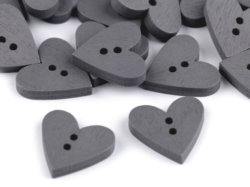 Dřevěný dekorační knoflík srdce - šedá tmavá (10 ks)