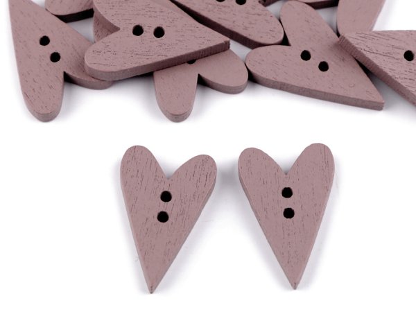 Dřevěný dekorační knoflík srdce - starorůžová tmavá (10 ks)