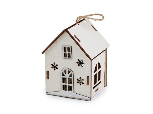 Dřevěný svítící domeček rozzáří každý interiér. Má poutavě zpracované detaily a svítí [teplým příjemným] světlem. Díky poutku ho můžete pověsit na stromeček nebo na dekorační věnce. Baterie jsou součástí balení (3xLR1130).