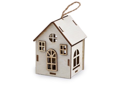 Dřevěný svítící domeček rozzáří každý interiér. Má poutavě zpracované detaily a svítí [teplým příjemným] světlem. Díky poutku ho můžete pověsit na stromeček nebo na dekorační věnce. Baterie jsou součástí balení (3xLR1130).