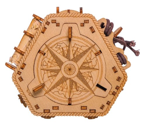 "Blackbeard's Compass" je vzrušující hra, která přináší záhadné dobrodružství přímo k Vám do rukou. Tato hra vytváří atmosféru tajemství a dobrodružství inspirovanou legendárním pirátem Černovousem a jeho ztraceným kompasem. hra obsahuje různé hádanky, z nichž každá odemyká další a nakonec vede ke skryté přihrádce uvnitř krabičky. Takže si určete kurz, nastavte plachty a vydejte se na legendární výpravu. Čeká Vás vzrušující cesta. Odhalíte poklad, nebo se stanete dalším příběhem, o kterém se šeptá v pověstech o pirátech? Rozměry: 12,6 x 12,6 x 7,1 cm Rozměr tajné přihrádky: 4 x 4 x 2,6 cm Věk: 14+ Materiál: dřevo