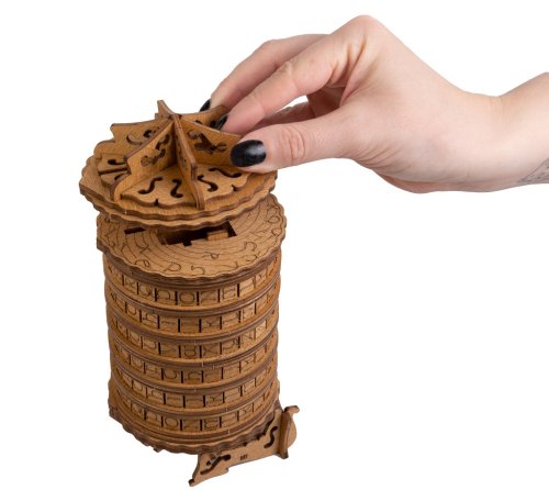 Kdo chce získat dárek, musí nejprve vyřešit několik hádanek! Všichni jsme nadšeni z dávání a přijímání dárků, tak proč tento proces ještě více nezpříjemnit? Vložte dárek do vnitřní přihrádky, nastavte svůj individuální kód, zapečeťte jej, vyzvěte svého kamaráda a sledujte jak se snaží otevřít Cryptex! Rozměry: 20 x 10 x 10 cm Věk: 14+ Materiál: dřevo