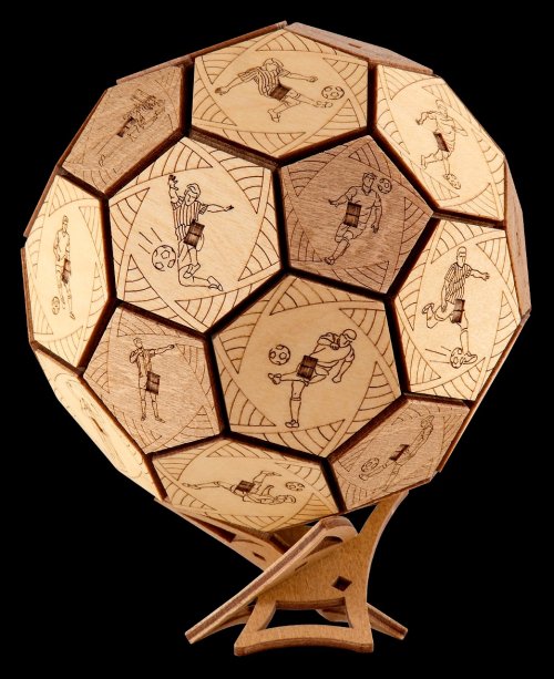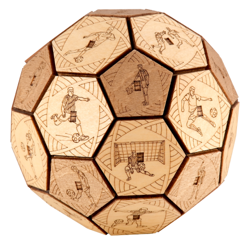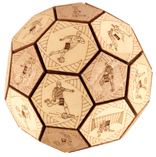 Už žádný nudný balící papír! Emoce jsou nejlepší dárek... Hledáte vhodný dárek pro fotbalové nadšence? Pak věnujte tento dárek s překvapením a zažijte strhující zábavu díky Quest Ball skládačce. Chcete najít tajemství ukryté v tajné vnitřní schránce? Sdílejte s přáteli zábavné okamžiky a soutěžte v odhalování mechanismu. Kdo první odhalí tajemství? Prokažte svou vynalézavost a vyřešte otevírací mechanismus. Věnujte dárek s překvapením, anebo skryjte svá vlastní tajemství díky tomuto dřevěnému míči s hlavolamem. Quest Ball v jedinečném designu je dokonalý pro uložení věcí, které jsou vašemu srdci drahé. Elegantní tvar jej proměňuje v umělecké dílo, které bude ozdobou interiéru nejen fotbalových fanoušků. Vyroben byl šetrně k životnímu prostředí, ze 100% přírodních materiálů a všechny jeho části byly přesně vyřezány nejlepší laserovou technologií. Splňuje všechny evropské bezpečnostní normy. Věk: 14+ Materiál: dřevo