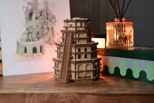 Ve starobylém městě Babylon stála kolosální věž, která se tyčila vysoko k obloze. Říkalo se, že tato mystická věž byla výtvorem samotných bohů. Lidé věřili, že hluboko uvnitř věže, za řadou hádanek, byl ukryt tajemný artefakt, který dával nezměrnou moudrost a sílu. Odvážíš se objevit četná tajemství Quest Tower, abys otestoval svou mysl a inteligenci? Tato kolosální výzva, krásně navržená a pečlivě vytvořená, slibuje, že uchvátí vaši mysl a zažehne jiskřičku Vaší zvědavosti. Quest Tower je vyroben výhradně z březového dřeva a je ekologicky šetrným výrobkem. Rozměry: 13 x 13 x 15,5 cm Věk: 14+ Materiál: dřevo Počet dílků: 171
