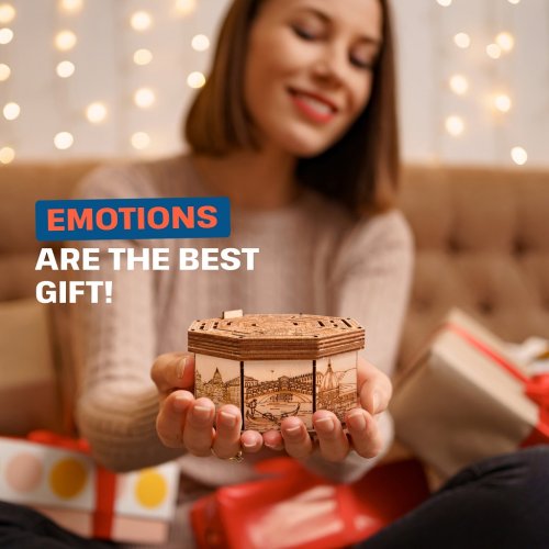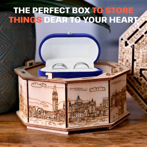 Odhalte mechanismus magického bludiště, abyste získali tajnou přihrádku. Věnujte dárek s překvapením, anebo skryjte svá tajemství díky tomuto vysoce kvalitnímu boxu s jedinečným designem. Secret Maze Box je dokonalý pro uložení věcí, které jsou vašemu srdci drahé. Elegantní tvar jej proměňuje v umělecké dílo, které bude ozdobou každého interiéru. Vyroben byl šetrně k životnímu prostředí, ze 100% přírodních materiálů a všechny jeho části byly přesně vyřezány nejlepší laserovou technologií. Splňuje všechny evropské bezpečnostní normy. Rozměry vnitřního prostoru: 9,5 x 10 x 4,5 cm Věk: 14+ Materiál: březové dřevo