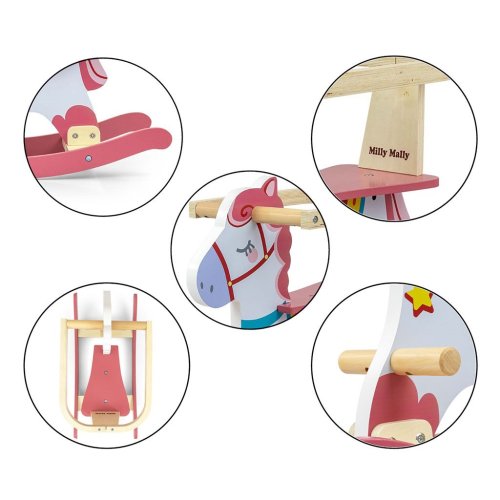 Jedinečný houpací kůň Lucky značky Milly Mally. Vytvořen tak, aby splňoval potřeby každého fanouška koní. Všechny děti milují houpání na koníkovi... připomíná jim houpání v maminčině náručí. Naše hračka je vyrobena ze dřeva, které je dnes vyhledávaným materiálem díky nestárnoucímu vzhledu.