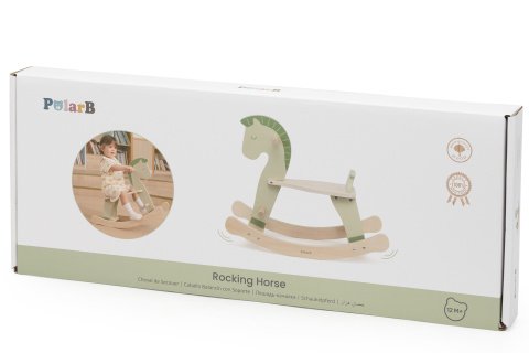 Dřevěný houpací kůň v zelenkavé barvě. Rozměry 65x30x50,5 cm. Baleno v krabici. Rozměry balení 67x27x6 cm. Věk 12m+