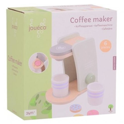 Dřevěný kávovar v krásných, jemných, pastelových barvách.