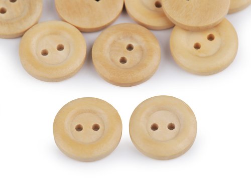 Dřevěný knoflík dvoudírkový velikost 20", 24", 28", 30", 32" - 30" přírodní sv. (200 ks)