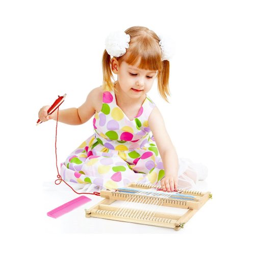 Je to kreativní hračka, která ovlivňuje dětskou fantazii, podporuje rozvoj motoriky vašeho dítěte - přesnost pohybů prstů a rukou. Hra s tkalcovským stavem poskytne zajímavou činnost, při které si každé batole může vytvořit vlastní tkalcovskou dílnu. sada obsahuje: rám pro tkalcovský stav, přídavný prvek, který po otočení zvedá přízi určenou ke tkaní, a hřeben na přitisknutí utkaného úseku a dva člunky na proplétání příze. Stav je zabalen v estetické, barevné krabici.