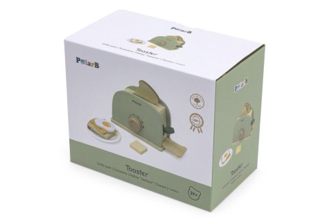 Dřevěný toustovač. Balení obsahuje toustovač, plátek sýra, toast, vajíčko a talířek. Rozměry toustovače 17,5x10x10,9 cm. Rozměry balení cca 18x14,5x10 cm. Věk 3+