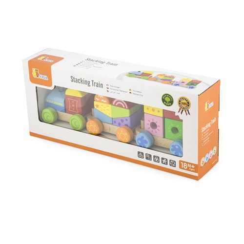 Dřevěný vláček s kostkami od společnosti Viga je hračka, kterou si zamiluje každé dítě. Intenzivní barvy a bloky, které se snadno uchopují, povzbudí každé batole ke hře.